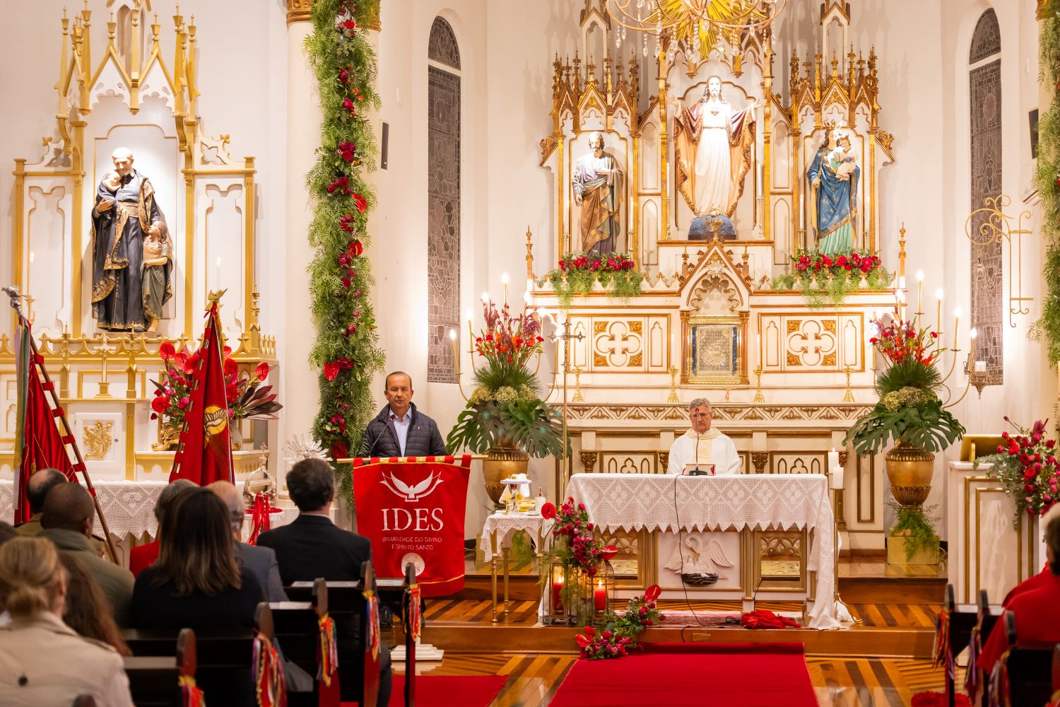 O governador Jorginho Mello participou da cerimônia de abertura da tradicional Festa do Divino Espírito Santo, realizada na noite desta quinta-feira, 16, em Florianópolis. O evento, que possui raízes históricas e culturais de origem açoriana, celebra a chegada do Espírito Santo e reúne milhares de fiéis e visitantes de diversas regiões. A celebração vai até o próximo domingo, 19, na Capela do Divino Espírito Santo.