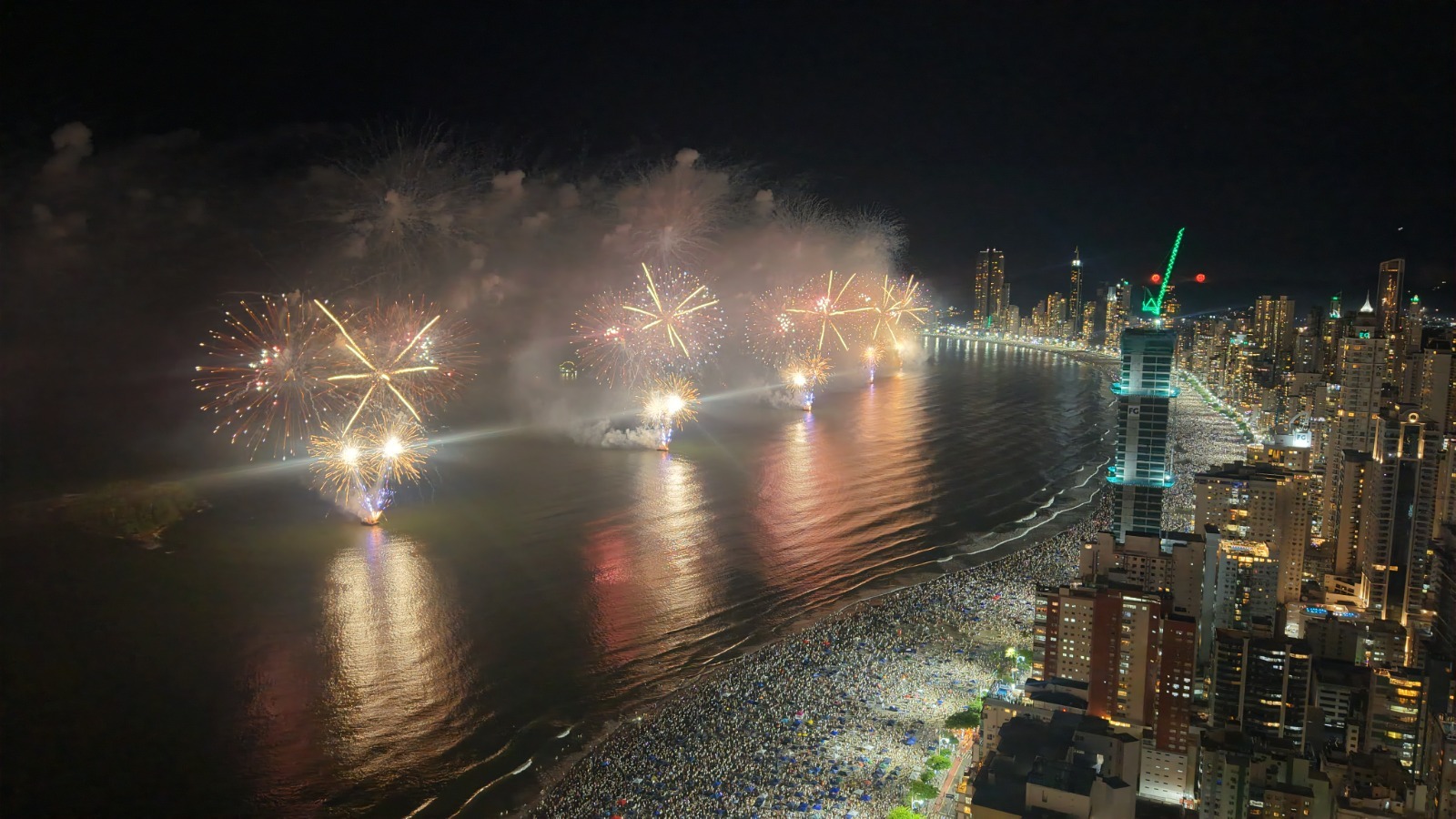 O Réveillon 2025/2026 em Balneário Camboriú foi celebrado por mais de um milhão pessoas nas areias da Praia Central, um dos principais cartões postais da cidade. Após a contagem regressiva na famosa roda gigante da Barra Norte, o público pôde presenciar 15 minutos da apresentação do show pirotécnico, que contou com 16 tipos diferentes de fogos, cores e diversos formatos. Ao todo, foram utilizadas oito balsas flutuantes na baía da praia, com aproximadamente nove toneladas de material.