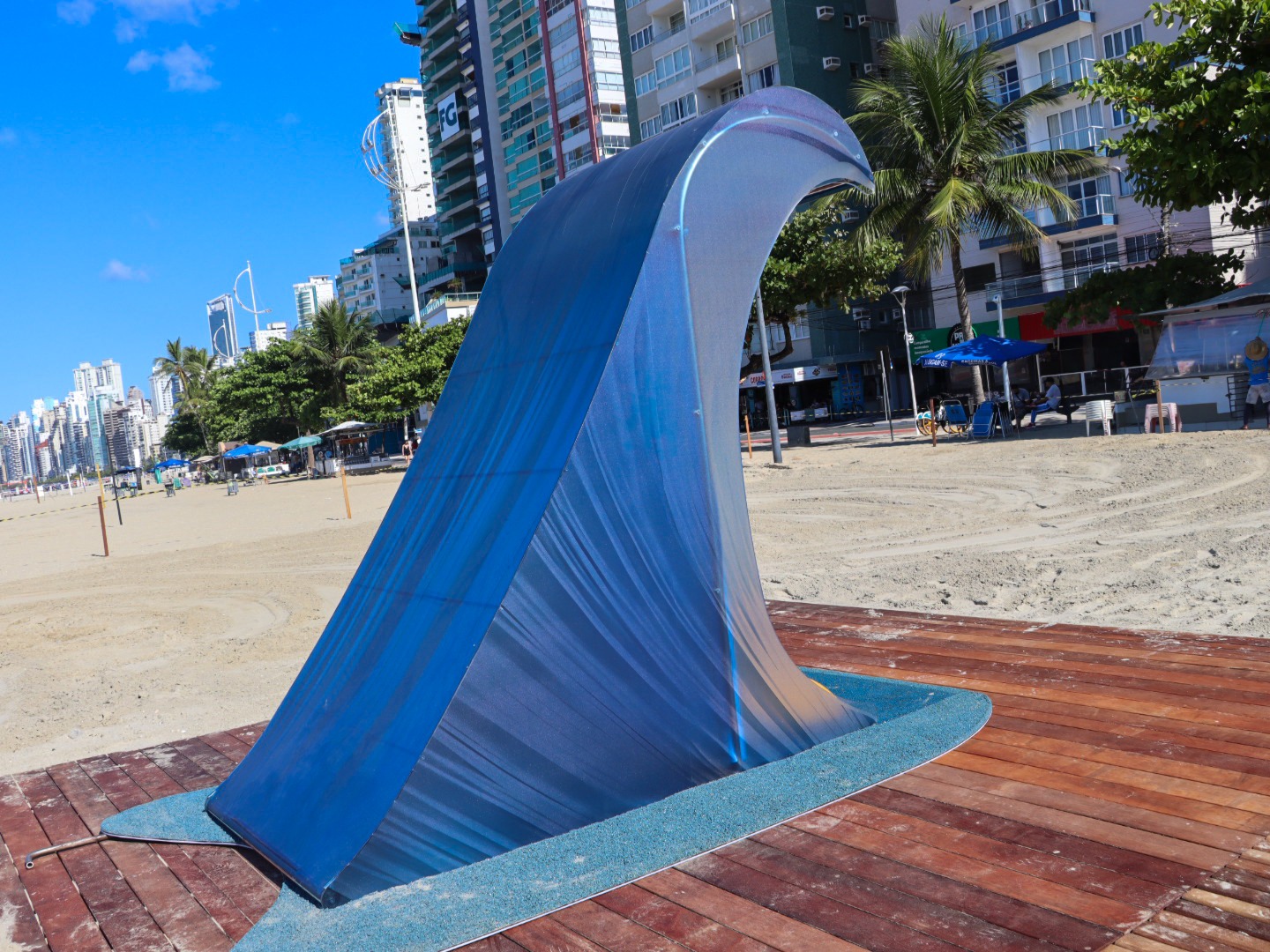 Equipamento de 2,4 metros de altura conta com LED e tem formato de onda