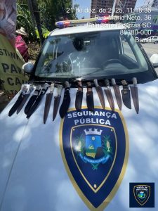 Diariamente, são realizadas operações conjuntas de fiscalização em estabelecimentos comerciais e junto a vendedores ambulantes, com foco prioritário em abordagens orientativas e ações preventivas. Até o momento, as equipes de Fiscalização de Posturas e da Guarda Municipal contabilizaram 32 abordagens, 14 notificações e 29 apreensões. Durante as ações, também foram recolhidos aproximadamente 600 óculos e 70 facas comercializados sem alvará.
