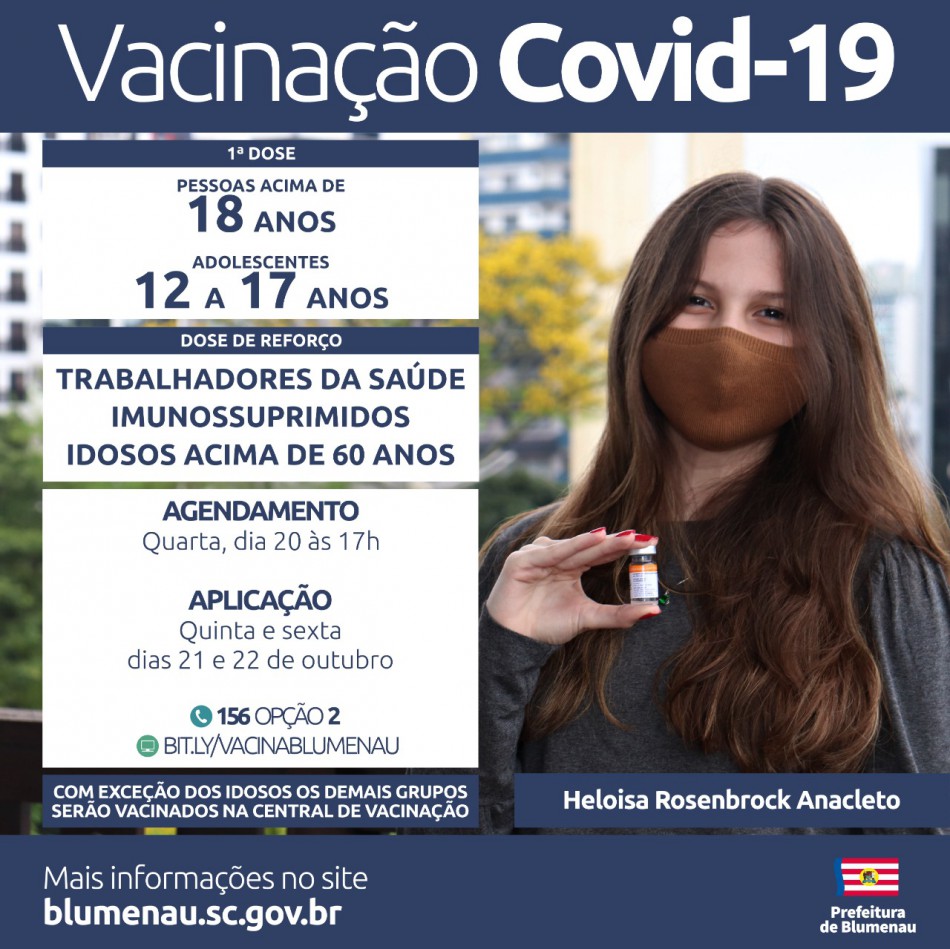 Blumenau amplia agendamento da vacina contra a Covid-19 para adolescentes, dose de reforço para idosos acima de 60 anos e outros grupos