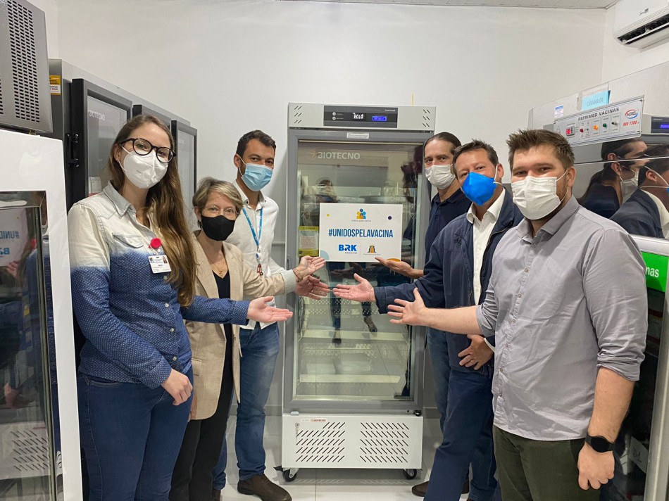 Na tarde desta sexta-feira, dia 12, a Prefeitura de Blumenau, por meio da Secretaria de Promoção da Saúde (Semus) recebeu a doação de uma câmara de congelamento para utilização no processo de vacinação contra Covid-19. A entrega foi feita pela empresa BRK Ambiental, concessionária responsável pelos serviços públicos de esgotamento sanitário do município, que doou o equipamento viabilizado por meio do movimento “Unidos pela Vacina”.