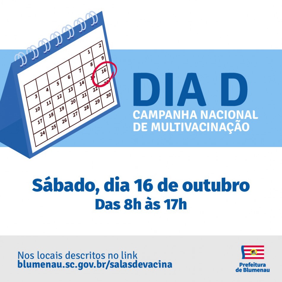 No próximo sábado, dia 16, a Prefeitura de Blumenau, por meio da Secretaria de Promoção da Saúde (Semus), vai promover o dia “D” de mobilização da Campanha Nacional de Multivacinação, do Ministério da Saúde (MS). Nesta data, as quase 40 salas de vacina ativas que incluem unidades de Estratégia Saúde da Família (ESFs) e Ambulatórios Gerais (AGs) estarão abertas, das 8h às 17h, para vacinar crianças e adolescentes menores de 15 anos de idade.