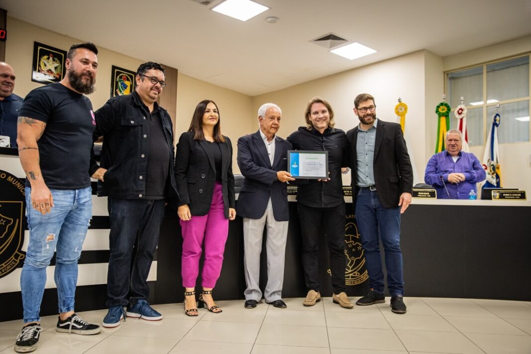 Há 17 anos no ar e considerada um dos principais veículos de comunicação de Itapema, a Rádio Cidade 104.1 FM recebeu Moção de Reconhecimento da Câmara na noite de terça-feira (25). A proposição foi concedida pelo vereador Adriano Pivotto (Podemos), que destacou o incentivo da Rádio Cidade para o impulsionamento do comerciante local, seu pioneirismo e sua popularidade.
