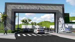 O pórtico de boas vindas na entrada da cidade de Camboriú, na Avenida Santa Catarina, segundo laudo técnico da Defesa Civil do município, está com sérios riscos estruturais e deve ser demolido.