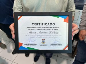 – Entreguei um certificado em reconhecimento aos serviços prestados à população de Camboriú. Seu trabalho deixou uma marca positiva em nossa cidade – declarou o prefeito num momento de emoção e gratidão.