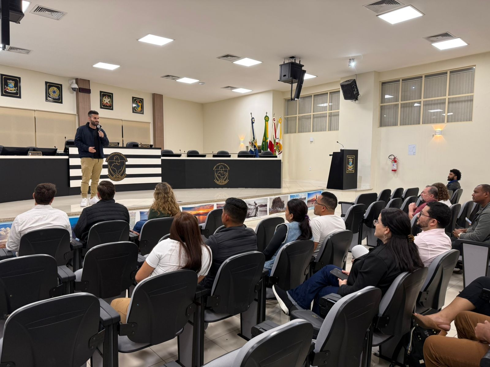 Durante a cerimônia, representantes do SENAI e SENAC reforçaram a importância das parcerias para o fortalecimento da educação profissional e para o desenvolvimento econômico do município.