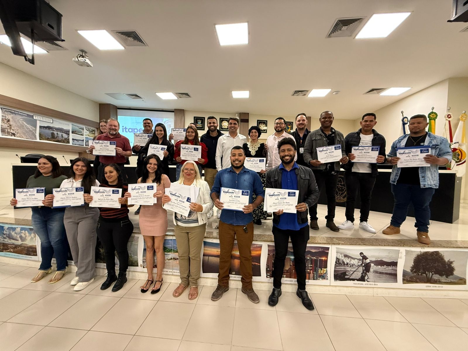 A secretaria de Desenvolvimento Econômico e Habitação da Prefeitura Municipal, realizou nesta quarta-feira (29/10), a solenidade de entrega dos certificados do Itapema Qualifica, programa municipal de capacitação profissional desenvolvido em parceria com o SENAI e o SENAC de Santa Catarina. O evento reuniu autoridades, instrutores, familiares e formandos, na celebração da conclusão dos cursos dos eixos Construção Civil e Comércio e Inovação.
