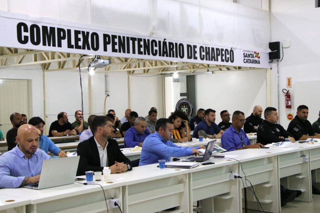 Gestores de unidades prisionais de todo o Brasil estão reunidos entre terça, 26, e esta quarta-feira, 27, no Complexo Penitenciário de Chapecó, participando de um programa de capacitação com foco em segurança dinâmica. O programa está sendo promovido pela Diretoria de Inteligência Penitenciária da Secretaria Nacional de Políticas Penais (DIPEN/SENAPPEN), em colaboração com o Escritório das Nações Unidas sobre Drogas e Crimes (UNODC).