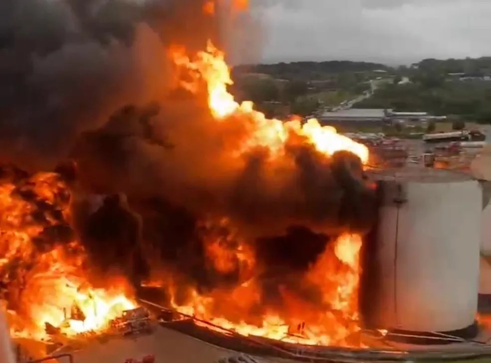 Por volta das 8h10 chovia na região, o que ajuda a dissipar a fumaça. No entanto, há risco de explosões na empresa, que abriga entre 1,5 a 2 milhões litros de gasolina, diesel e álcool.