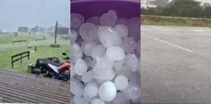 Granizo em Bom Jardim da Serra, na Serra, Jaraguá do Sul, no Norte, Blumenau, no Vale do Itajaí, e Nova Trento, na Grande Florianópolis. –  Foto: Reprodução/Redes sociais.