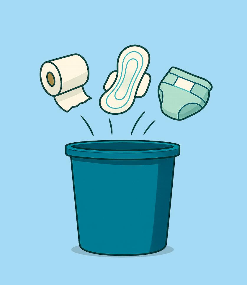 Itens como papel higiênico, absorventes, fraldas, fios de cabelo, fios dentais e bitucas de cigarro devem ser descartados no lixo comum, nunca na rede de esgoto. Essa prática responsável contribui para a preservação do meio ambiente e para um tratamento eficaz dos efluentes.