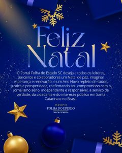 Ao final, a Folha do Estado de Santa Catarina deseja a todos um Feliz Natal e um Ano Novo de grandes realizações, reafirmando seu compromisso de seguir informando com independência, credibilidade e respeito à sociedade catarinense e brasileira.