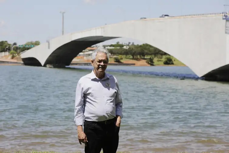 Ex-ministro dos Direitos Humanos, Nilmário Miranda, durante ato na Ponte que se chamava Costa e Silva e passou a se chamar Honestino Guimarães na semana de luta pela Democracia (2023). Joédson Alves/Agência Brasil.