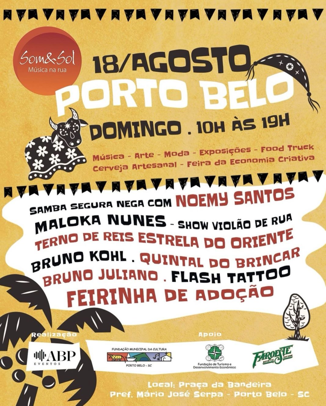 O Som&Sol – Música na Rua é realizado pela ABP Eventos com apoio da Prefeitura de Porto Belo, através da Fundação Municipal de Cultura e Fundação Municipal de Turismo e Desenvolvimento Econômico, e da Faroeste Beer.