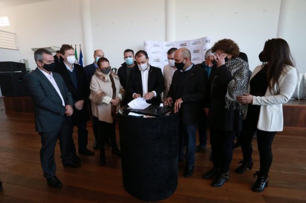 Aguardada há mais de 40 anos, a pavimentação asfáltica da rodovia municipal Félix Simon, trecho que liga Treze de Maio a 12 municípios da região Sul, está prestes a se tornar realidade. Na manhã desta quinta-feira, 1° de julho, o governador Carlos Moisés assinou o convênio para a pavimentação, drenagem pluvial, sinalização viária e construção de duas pontes de concreto armado. Os investimentos do governo do Estado chegam a R$ 10,3 milhões.