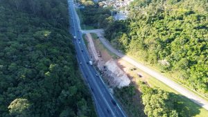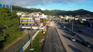 Já na altura do Morro das Madeireiras, os trabalhos agora se concentram na escavação do leito da terceira faixa no sentido Bairro-Centro e no plantio de grama em leiva no corte esquerdo da via, altura do quilômetro 17,9. Também está em curso a execução de drenagem na região, mas no sentido Norte da SC-401.
