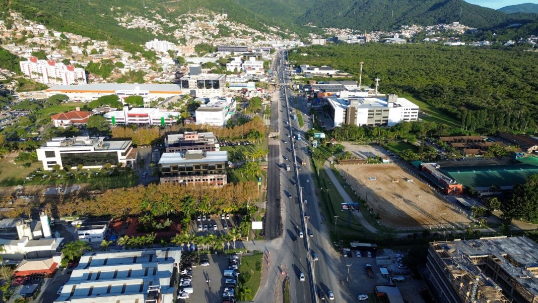 As obras de triplicação da SC-401, no Norte da Ilha de Santa Catarina, avançam em duas frentes. No Morro das Madeireiras, considerado um dos pontos mais sensíveis da rodovia, e na reta entre o shopping e o trevo de Cacupé, que concentra grande número de empreendimentos, e onde a empresa vencedora da licitação já começou a colocação da capa asfáltica na terceira faixa no sentido Centro-Bairro.