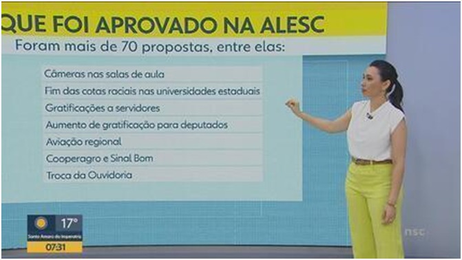 Além do fim das cotas raciais em universidades públicas do estado, a Assembleia Legislativa de Santa Catarina (Alesc) votou na última quarta-feira (10) outros projetos polêmicos e que estão dividindo a opinião pública. Entre eles, está uma proposta que prevê a instalação de câmeras de videomonitoramento nas salas de aula em escolas de ensino médio das redes pública e privada.