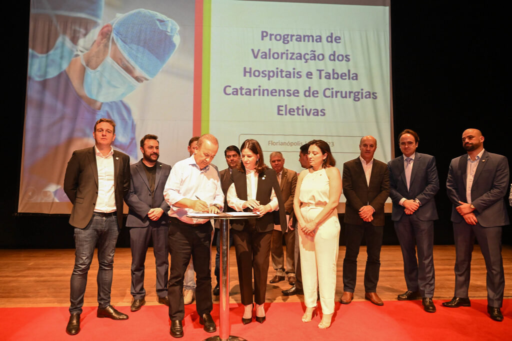 Uma manhã de grandes anúncios para a área da saúde em Santa Catarina, quando foram lançados o Programa de Valorização dos Hospitais e a Tabela Catarinense de procedimentos cirúrgicos eletivos. Serão mais de R$ 650 milhões destinados em incentivos às unidades de saúde parceiras em 2024, além dos valores para cirurgias eletivas mediante produção.