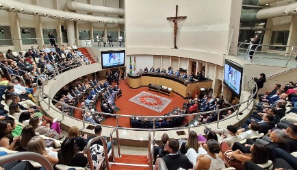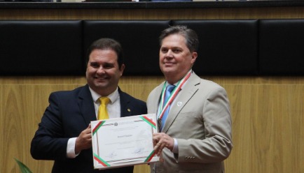 Promotores de Justiça do Ministério Público de Santa Catarina (MPSC), Daniel Paladino e Fernando da Silva Comin foram condecorados com a mais alta honraria concedida pela Assembleia Legislativa de Santa Catarina (ALESC). A Comenda do Legislativo Catarinense foi entregue aos membros do MPSC em sessão solene ocorrida nesta segunda-feira (20), no Palácio Barriga Verde, em Florianópolis.