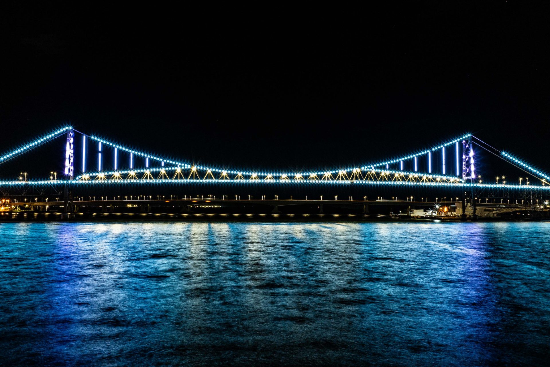 A iluminação realça detalhes estruturais, como os cabos e as torres da ponte, criando um visual impressionante à noite. Além do apelo estético, o sistema de iluminação foi pensado também com foco em eficiência energética e sustentabilidade, utilizando tecnologias modernas que reduzem o consumo de energia e o impacto ambiental.
