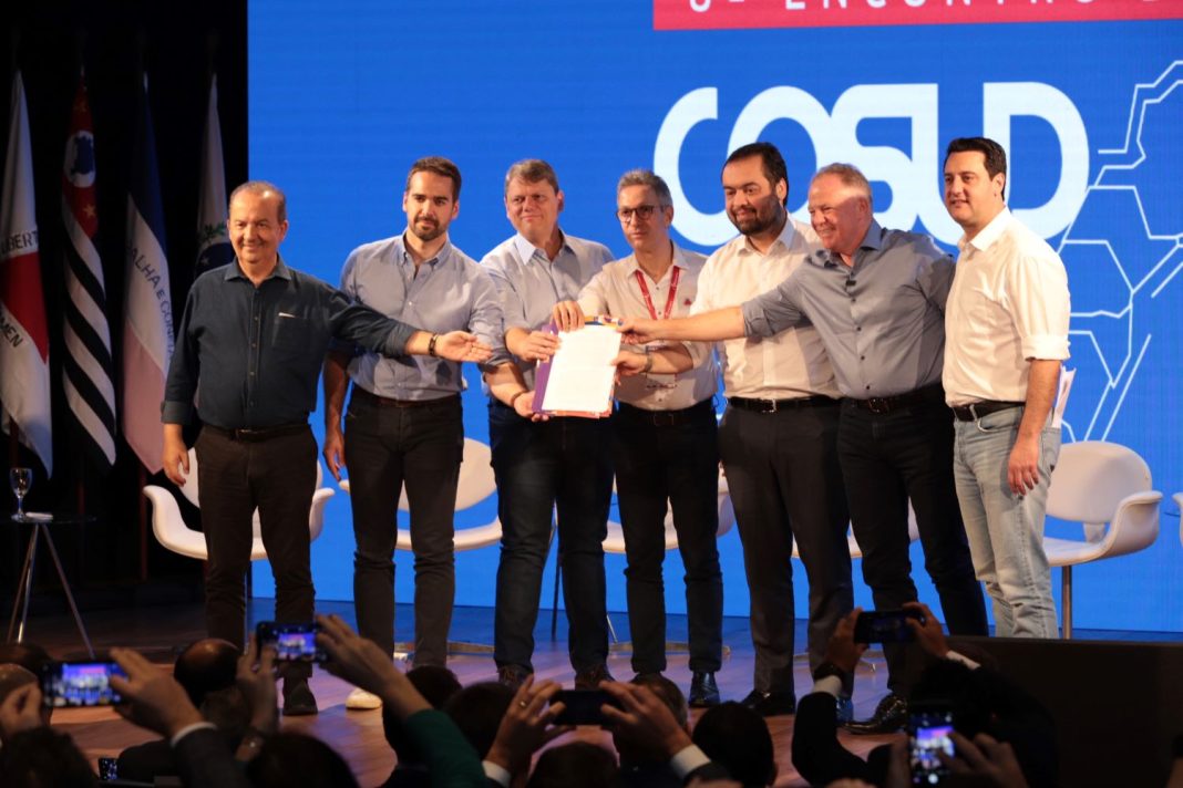 – Na 12ª edição do Cosud, em Florianópolis, vamos avançar ainda mais em propostas que alavanquem o crescimento da economia brasileira, atraindo investidores e gerando emprego e renda de forma sustentável. O Cosud já é referência no debate e no desenvolvimento de políticas públicas no Brasil. Juntos, governadores do Sul e Sudeste provam que a união de esforços leva a soluções mais eficientes para demandas fundamentais dessas regiões – pontuou o governador mineiro.
