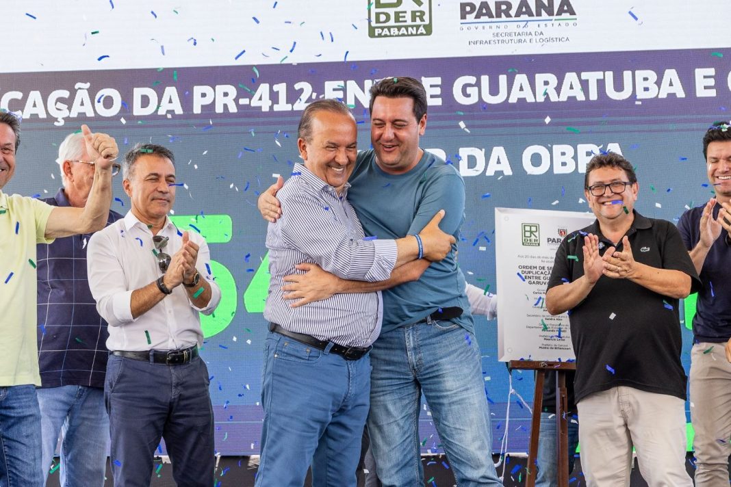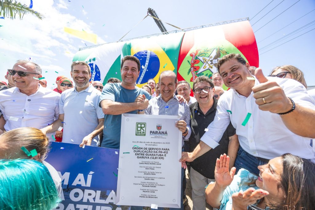 – Estava já no meu cronograma fazer a duplicação de Garuva no trecho Paraná. Como surgiu essa questão da dívida do Estado do Paraná, onde Santa Catarina ganhou na Justiça, o Paraná ia pagar isso daqui a 10 anos, possivelmente, como precatório. E numa conversa entre mim e Jorginho, eu falei ‘posso antecipar o pagamento disso e beneficiar os dois estados juntos. Vamos unificar os projetos e vamos resolver esse negócio logo para atender a população de Garuva e a população de Guaratuba’. E deu certo, a nossa maturidade política, nossa visão de futuro, de inovação, foi o que valeu – disse o governador do Paraná.