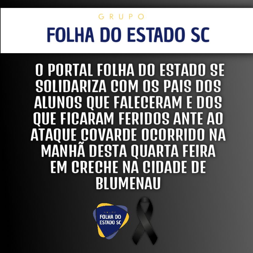 O Poder Legislativo de Santa Catarina lamenta, imensamente, a tragédia no município de Blumenau, a morte de quatro inocentes e mais alguns feridos hospitalizados.