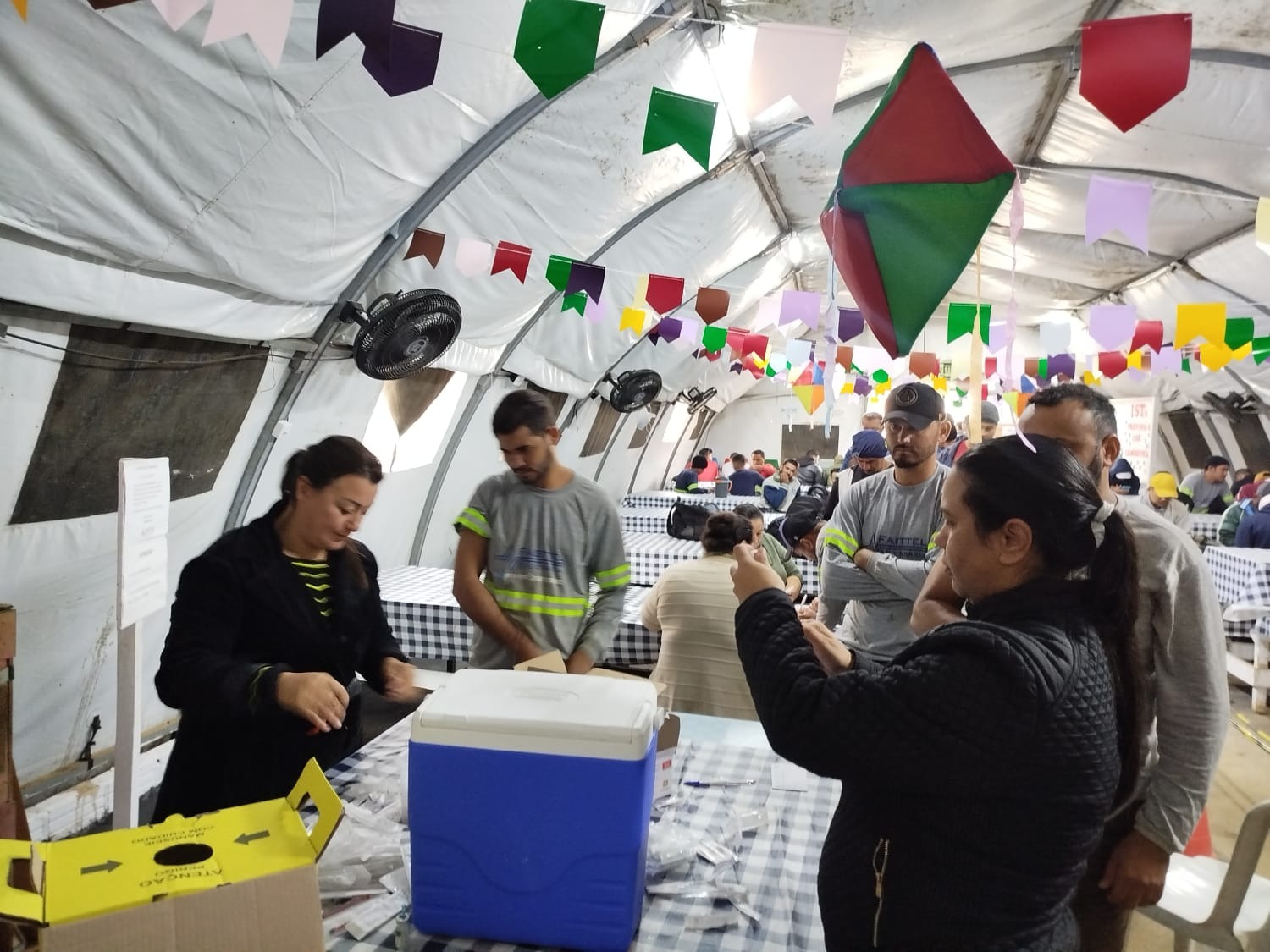 A Secretaria de Saúde de Guaramirim, por meio da Vigilância Epidemiológica, realizou nesta sexta-feira (13) uma importante ação de prevenção em uma empresa do município. Durante a atividade, foram aplicados 243 testes rápidos para detecção de HIV e hepatites virais, além da imunização de mais de 100 trabalhadores com vacinas contra a gripe (influenza), tétano, hepatite e outras doenças.