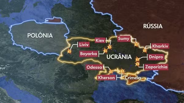 - Na sexta-feira a Rússia lançou uma de suas maiores ofensivas contra diferentes regiões da Ucrânia.