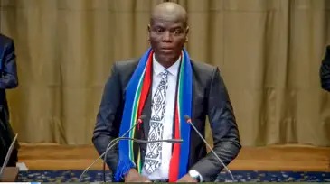 Ministro da Justiça da África do Sul, Ronald Lamola, disrcursa na audiência da Corte Internacional – Frame Corte Internacional de Justiça