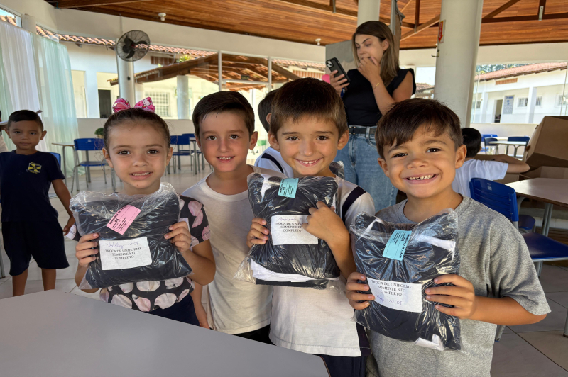 Cada kit de inverno é composto por duas calças e uma jaqueta, oferecendo proteção adequada para os dias frios. Os kits de verão, entregues anteriormente, contam com duas camisetas (uma branca e uma azul) e duas peças inferiores: bermudas para os meninos e shorts-saias para as meninas.