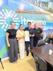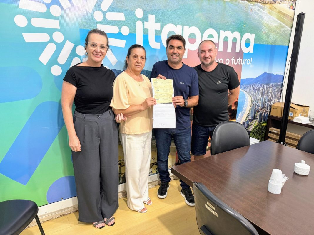 Na foto: Secretaria de Financas, Vera Lurdes, a presidente da Câmara, Zulma Souza, o prefeito de Itapema, Alexandre Xepa e o Secretário de Administração da Câmara, Juliano Oliveira