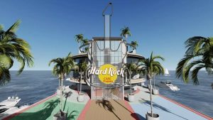 Localizado no Píer Oporto, estrutura inédita na América Latina, inaugurada em dezembro último, com 300 metros de extensão sobre o mar e mais de 18 mil metros quadrados de área construída, o restaurante flutuante é o primeiro da marca no mundo. O empreendimento oferece gastronomia e música, bem como exibe itens históricos do rock. Além dele, o Píer conta com um mix comercial diversificado, com lojas, restaurantes, quiosques e academia com vista panorâmica.