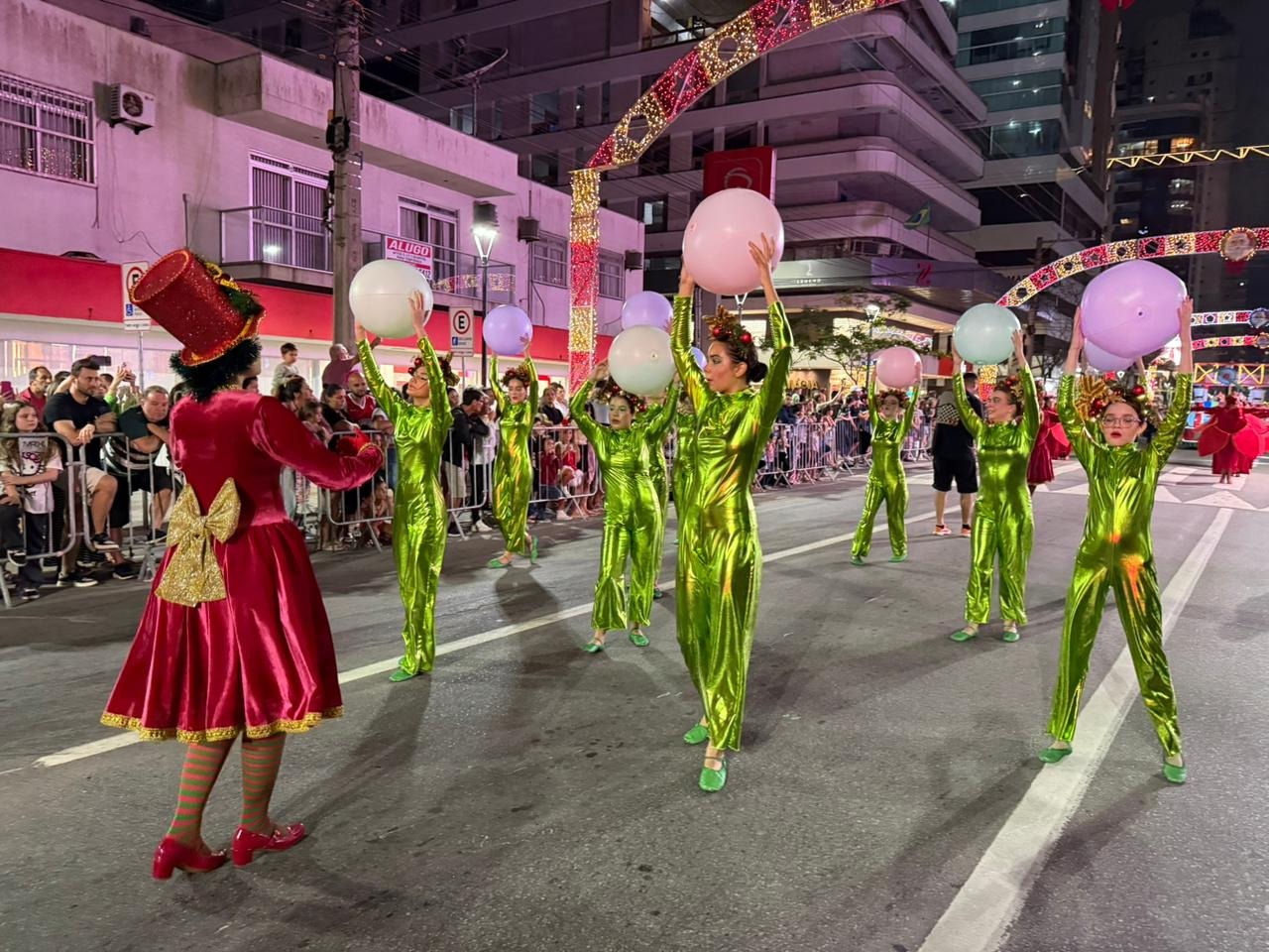 O espírito natalino tomou conta de Itapema na noite deste domingo (30/11) com a abertura oficial dos Desfiles do Feliz Natal Itapema 2025. A Avenida Nereu Ramos na Meia Praia ficou completamente lotada por moradores e turistas, que acompanharam emocionados o grandioso espetáculo ‘A Fantástica Fábrica de Brinquedos’.