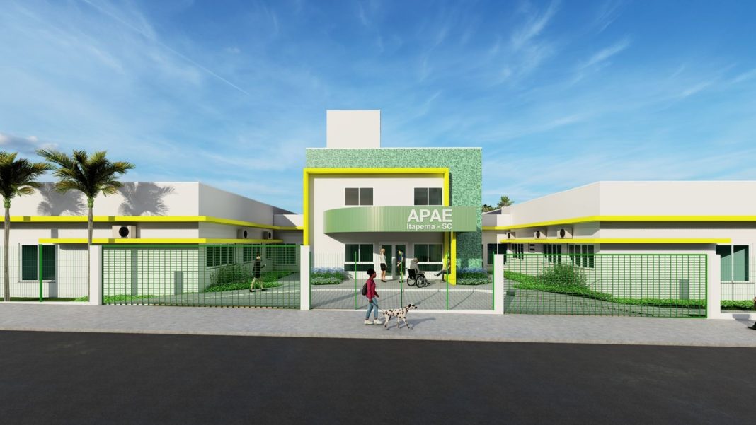 O novo prédio da APAE de Itapema será construído em terreno doado pela Prefeitura Municipal, com investimento de aproximadamente R$ 10 milhões custeados pelo Governo do Estado. A unidade terá 1.665,77 m² de área total construída, distribuída em dois pavimentos. No térreo, o projeto contempla consultórios médicos e de psicologia, salas para terapeutas, fonoaudiólogos, assistente social e coordenação pedagógica. O espaço também contará com duas salas de fisioterapia, jardim sensorial, sete salas de aula, além de ambientes específicos para artes, culinária, música e projetos.