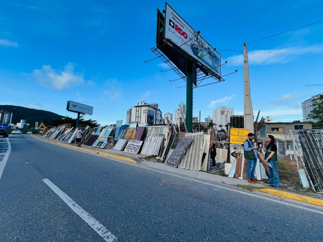 Após diversas notificações ignoradas, a Vigilância Sanitária interditou nesta quinta-feira (15) um estabelecimento localizado na Marginal Leste, região central de Itapema. O local utilizava irregularmente o passeio público para armazenar restos de obras e sucatas, comprometendo a segurança e a mobilidade de pedestres.