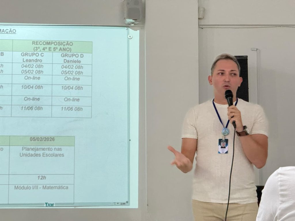 A formação segue até o mês de junho, em formato presencial e assíncrono, com atividades realizadas por meio da plataforma Avamec. O cronograma contempla encontros presenciais nos meses de abril e junho, garantindo momentos de aprofundamento, troca de experiências e acompanhamento das práticas pedagógicas desenvolvidas nas escolas.