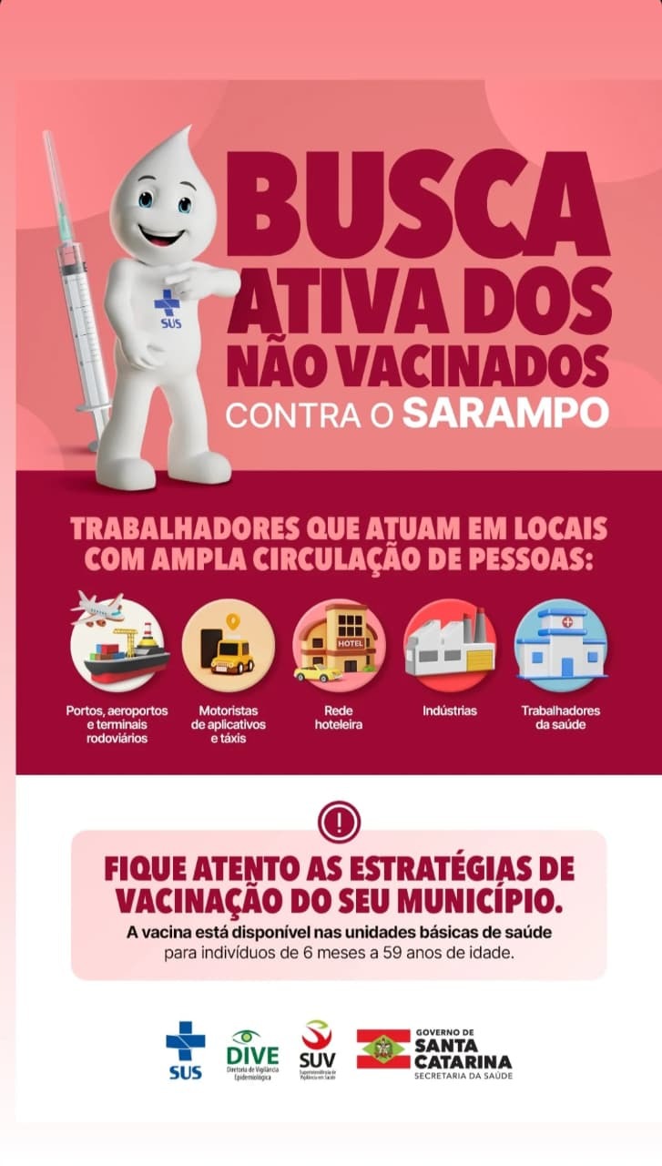 A Secretaria de Saúde alerta que o sarampo é altamente contagioso e pode levar a complicações graves, especialmente em crianças. A busca ativa será feita com apoio dos agentes de saúde, que orientarão a população e reforçarão os chamados para a vacinação.