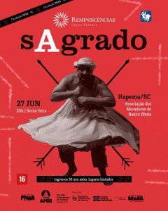 Herança dos povos que foram trazidos do continente africano ao longo de séculos de escravização – as religiões de matriz africana fazem parte da identidade múltipla e miscigenada do povo brasileiro. Em muitas ocasiões, no entanto, são alvos de perseguição e de fortes manifestações de intolerância religiosa. No espetáculo sAgrado, o ator João Tomaz Santos, do Grupo Reminiscências, apresenta a fé, a dança, os cantos, os ritos e, sobretudo, as suas próprias memórias como forma de expressão dessa religiosidade. Em circulação pelo litoral catarinense, a peça será apresentada na Associação dos Moradores do Bairro Ilhota (AMBI) em Itapema, nesta sexta-feira (27), às 20h, com entrada gratuita. A classificação indicativa é 16 anos.