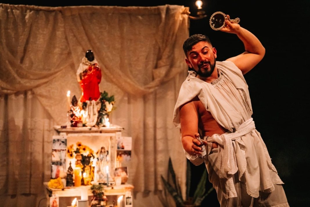 Espetáculo sAgrado, um solo do ator João Tomaz Santos tem direção de Pepe Sedrez e está em circulação por cidades do litoral catarinense. Apresentação ocorre na Associação dos Moradores do Bairro Ilhota e tem entrada gratuita