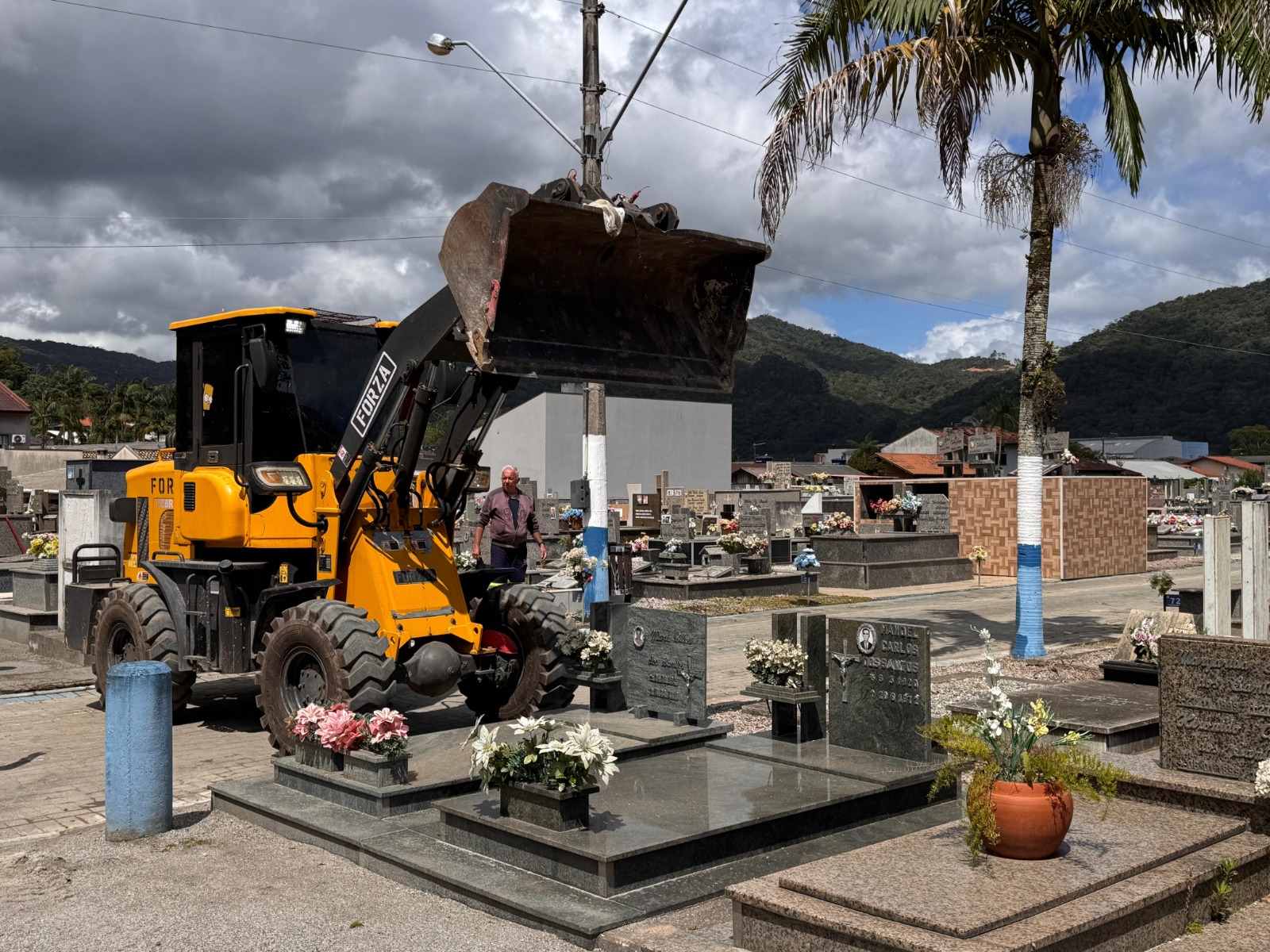 A secretaria de Obras da prefeitura de Itapema, intensificou as ações de manutenção e limpeza no Cemitério Municipal em preparação para o Dia de Finados, a ser celebrado no próximo domingo, 2 de novembro.