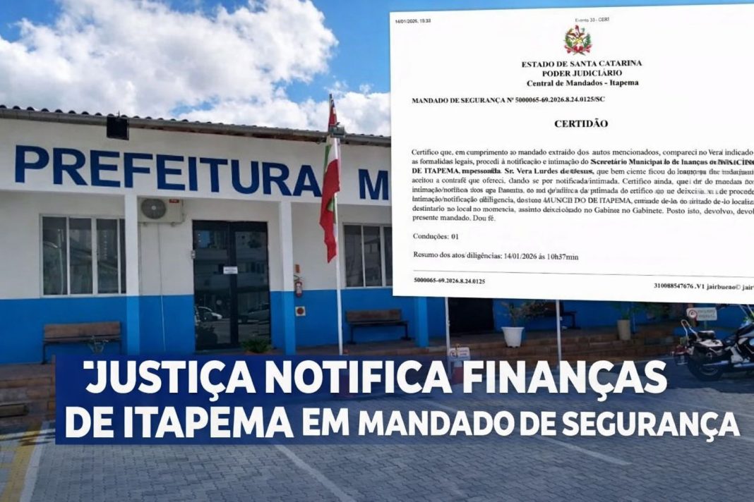Itapema (SC) – O Poder Judiciário de Santa Catarina notificou oficialmente o Município de Itapema, por meio da Secretaria Municipal de Finanças, no âmbito do Mandado de Segurança nº 5000065-69.2026.8.24.0125, ajuizado pela entidade Cantinho da Alegria, que questiona o atraso no repasse de recursos públicos destinados à instituição.