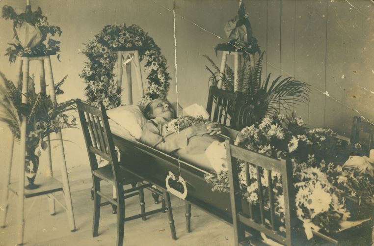 É sempre uma inquietação saber que a morte é um acontecimento real e marca um fim inevitável para todos. Sempre causa um impacto, e é considerada pela maioria da sociedade como algo assustador, um assunto desagradável que causa questionamentos e reflexões. Na história da humanidade existem rituais para aliviar a dor dos familiares e amigos. Os funerais, de acordo com os usos e costumes de cada povo, seguem uma linha ritualística funerária para elevar o morto do plano material à espiritualidade. Dentro desta concepção, procura-se fazer que “o emocional dos entes queridos fique bem e em paz consigo mesmo e com o finado”. Nesse sentido, a religião aparece como intervenção divina nos assuntos dos homens para consolar e entender este momento de passagem para outra dimensão. O dia 2 de Novembro é uma data dedicada pelo calendário cristão aos Finados. Um dia de reflexão da vida e da morte. (Fonte: Secretaria Municipal de Cultura e Relações Institucionais de Blumenau / Arquivo Histórico José Ferreira da Silva / Acervo iconográfico – Fundo Memória da Cidade – Diversos – Morte/ Moratelli, Maria Helena dos Santos. Ritos funerários em Blumenau – Revista Blumenau em cadernos tomo LVIII, set/out 2017, p. 39-56)