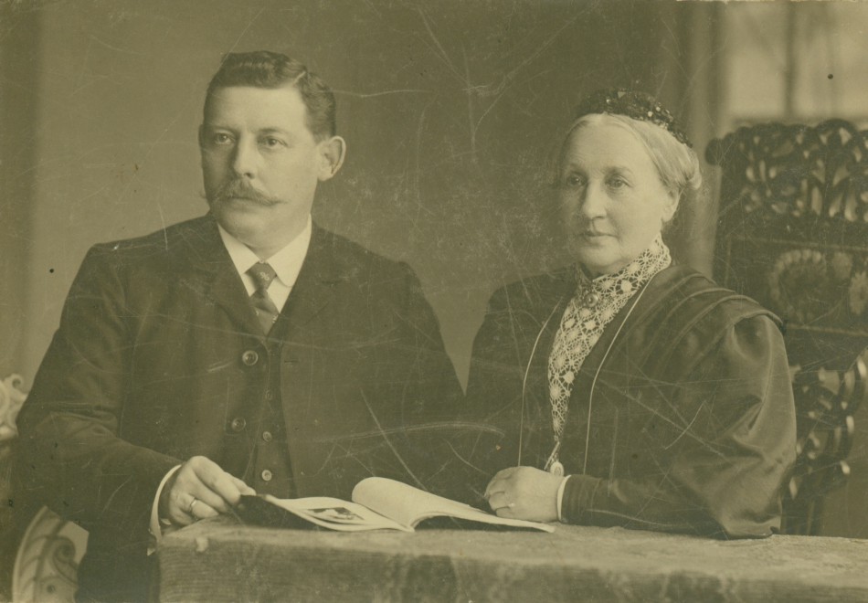 Pedro Cristiano Feddersen chegou a Blumenau com 22 anos, em setembro 1879. Tentou a agricultura, adquirindo um lote de terras com parte do dinheiro que trouxe. Depositou o restante na casa comercial de Meyer & Sperling, um dos comerciantes mais fortes da colônia. Sofreu prejuízos com a enchente de 1880, que causou enormes estragos. Tentou a sorte em São Paulo e não teve êxito. Retornou para Blumenau em 1885 e passou a gerir os negócios da filial da firma Gustav Salinger, na Itoupava Seca. Dedicou-se ao comércio e indústria e prosperou. Tornou-se credor para a construção da Estrada de Ferro Santa Catarina, estrada de rodagem de Subida e Curitibanos, ponte sobre o Itajaí e a Usina Elétrica do Salto. Incentivava a criação de sociedades artísticas, recreativas e de cultura. Foi conselheiro municipal, presidente da Câmara, deputado estadual e um dos chefes políticos atuantes de Blumenau. Morreu no dia 22 junho de 1947. Na imagem, vemos Peter Christian Feddersen e sua mãe, Nicole Grach, casada com Johann Friedrich Feddersen, em Hamburgo, no dia 4 de novembro de 1908. (Fonte: Secretaria Municipal de Cultura e Relações Institucionais de Blumenau / Arquivo Histórico José Ferreira da Silva / Acervo iconográfico – Fundo Memória da Cidade – Privado – Famílias – Feddersen – cla: 2.F.2.1.1/ Revista Blumenau em Cadernos, dezembro 1957, tomo I)