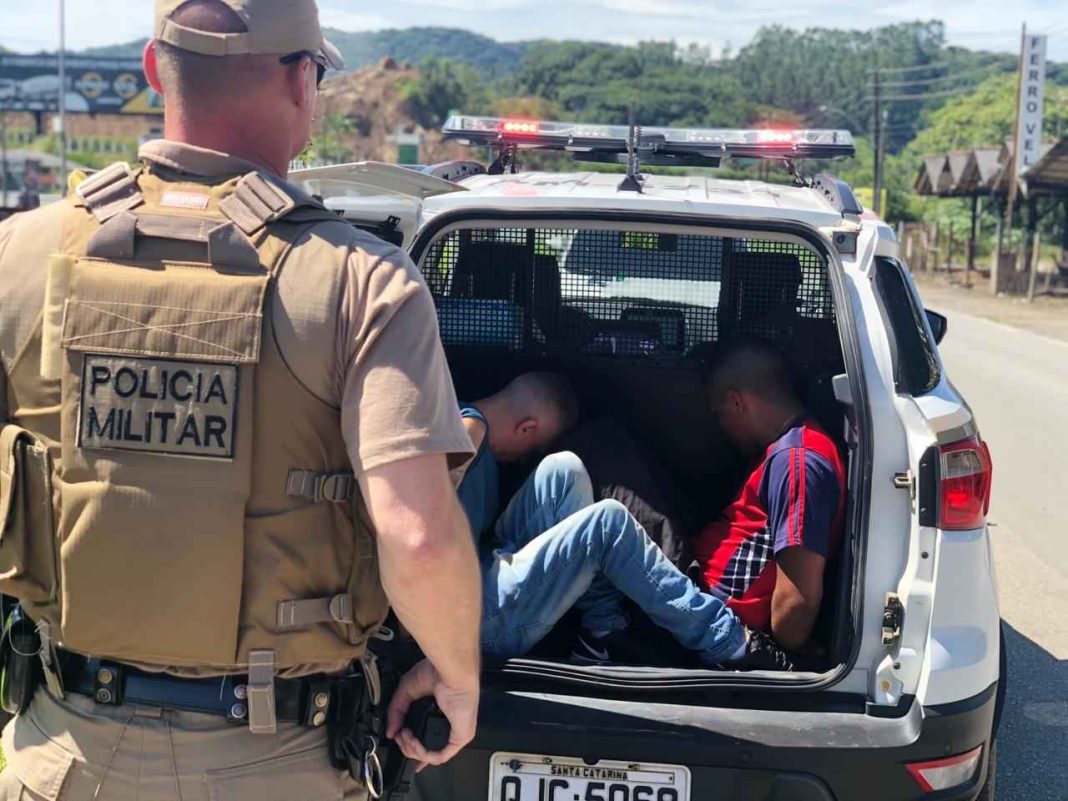 Segundo a Polícia Militar, a Agencia de Inteligência do 25º Batalhão recebeu informações do Núcleo de Inteligência da Secretaria de Segurança de Balneário Camboriú, que P. G. de A. V., 17 anos; e E. G. da S., também de 17 anos, estariam em HB20, de cor branca, com placas MLP-0347, com objetivo de furtar residências na região.