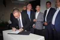 A assinatura do contrato contou com a presença de autoridades municipais, estaduais e federais, que estão engajadas na luta pela retomada da competitividade do Porto de Itajaí.