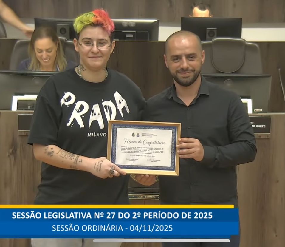 A DJ Nanny recebeu uma Moção de Aplauso em reconhecimento à sua contribuição para a música, cultura e representatividade de Balneário Camboriú. A honraria, concedida pelo Vereador Samir, marcou um momento histórico para a artista, que se tornou uma das principais referências do funk na região. O evento reforça a importância de artistas locais que constroem, com esforço e autenticidade, espaços de destaque dentro da cena cultural catarinense.