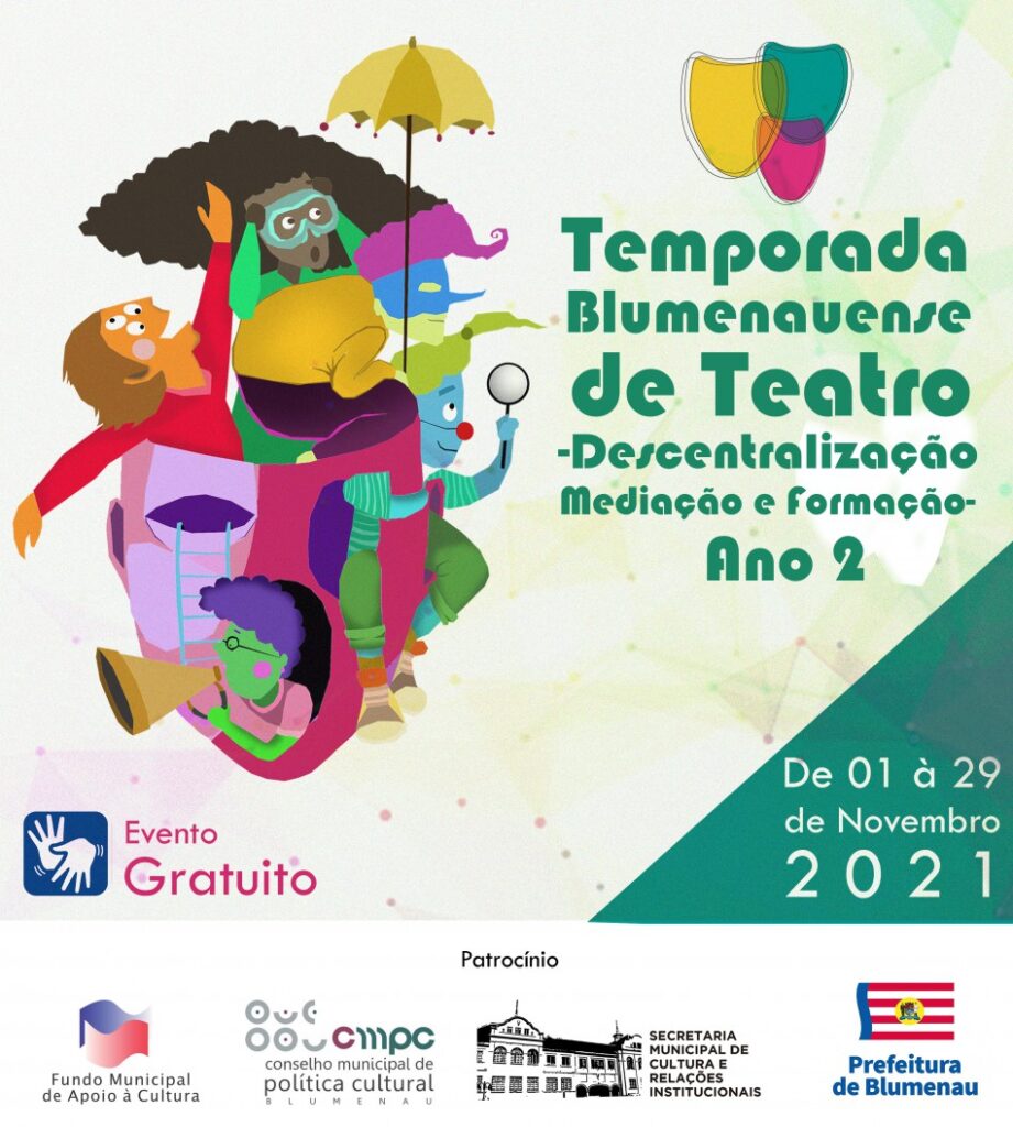 A segunda edição do projeto Temporada Blumenauense de Teatro (TBT): Descentralização, Mediação e Formação movimenta a cidade em novembro na versão online. As apresentações, rodas de conversa e oficinas nas escolas e para o público em geral serão compartilhadas gratuitamente e com tradução em Libras. O projeto de Cintia Daniela Galz é viabilizado com recursos do 2º Prêmio Herbert Holetz, do Fundo Municipal de Apoio à Cultura de Blumenau (edital 004/2019). Toda a programação estará disponível no site https://doity.com.br/movimento-tbt.